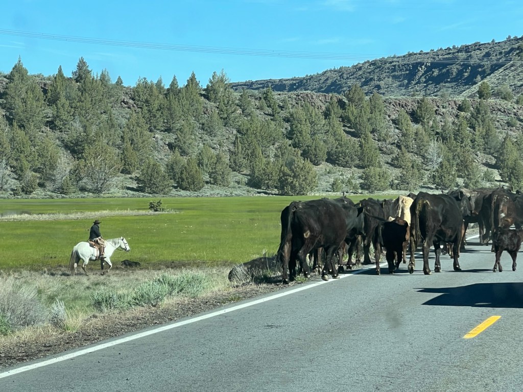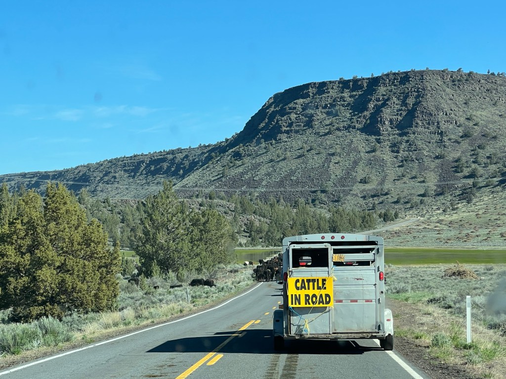 Woke up to freezing temperatures, but managed to get on the road early. There was little or no traffic through the Oregon Outback other than the “hoofed” variety. Also managed to get their s**t all over the truck and trailer.
