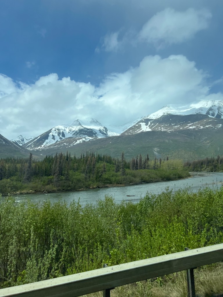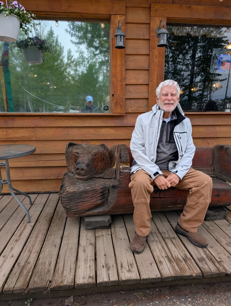 Southbound toward Anchorage with an overnight in Cantwell. Stopped in Denali for lunch. It was rainy and cloudy… mountains were clouded over so no pix of Denali 😦