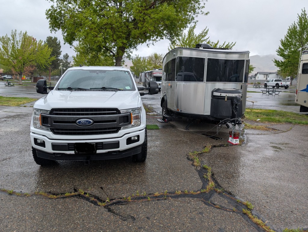 We’re now at the Hinden KOA RV campground for laundry, showers and shopping. Finally was able to purchase bear spray. Tonight it’s raining so it’s StarLink Internet movie time.