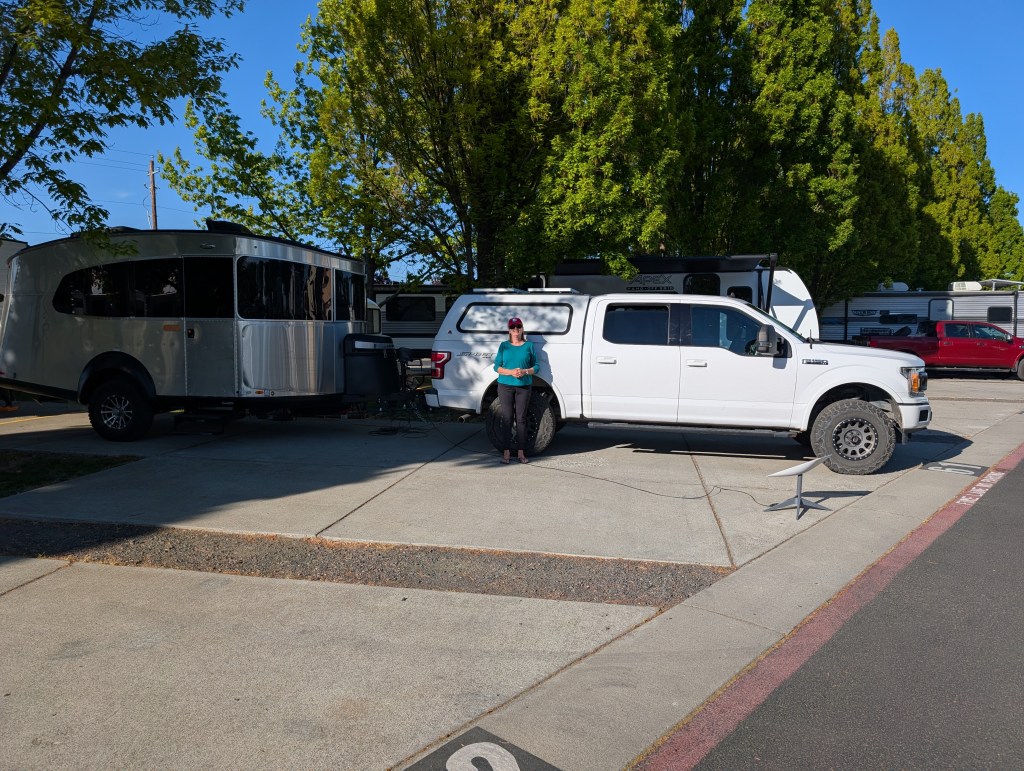 Here is a picture at the Pendleton KOA RV Park of the rig after a quick rinse.