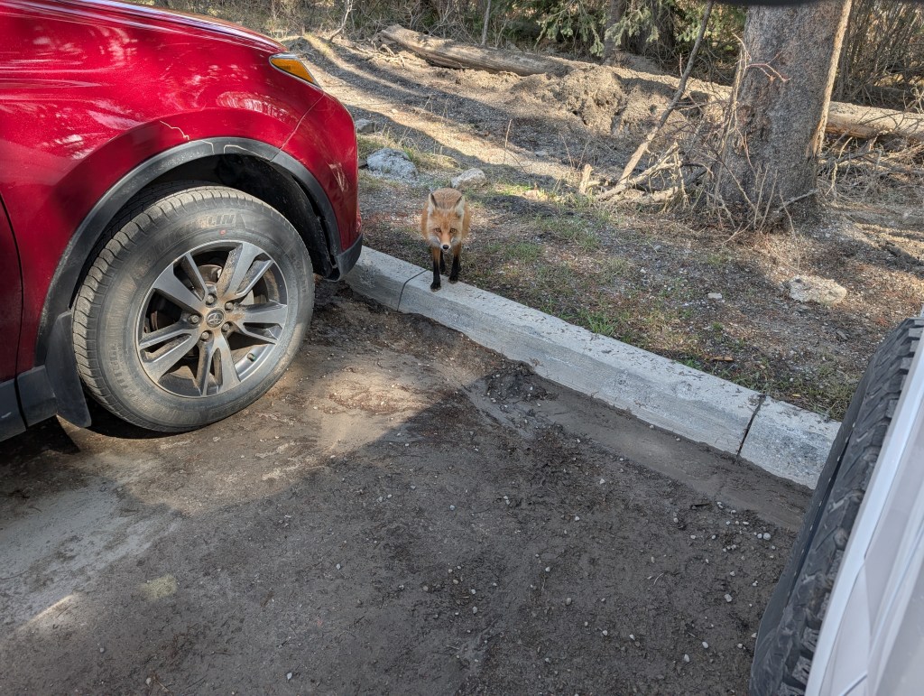 Got back to the truck and had a bit of a scare. Becky was giving Tink (her Yorkie) a comfort break (on leash). They finished up and got in the truck. Then, a red fox ran from under the truck. Apparently the fox had been stalking Tink as a possible meal!! All is well… I sent the fox on it’s way 😉
