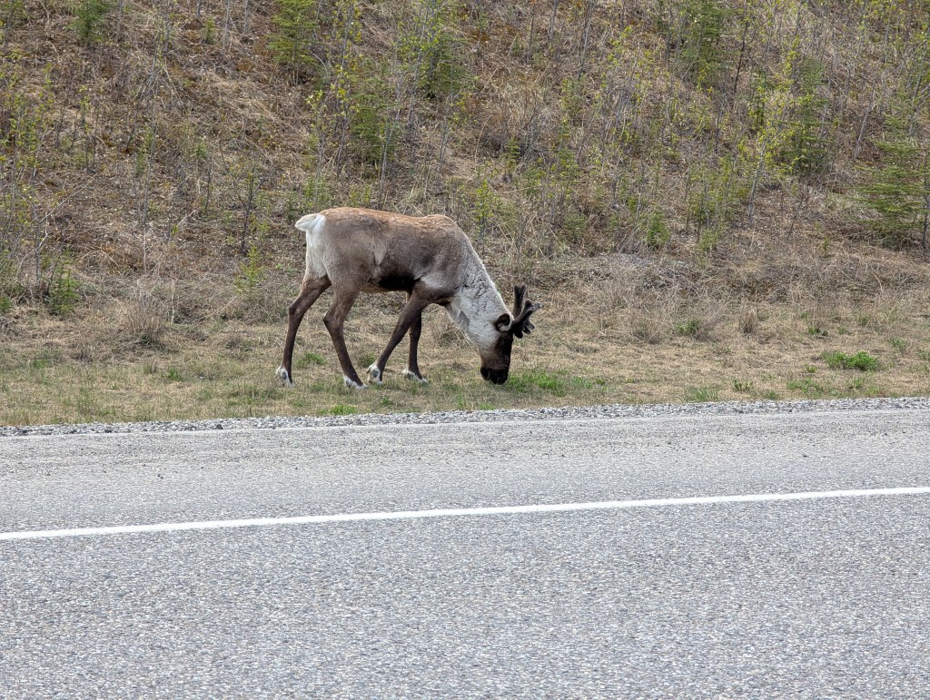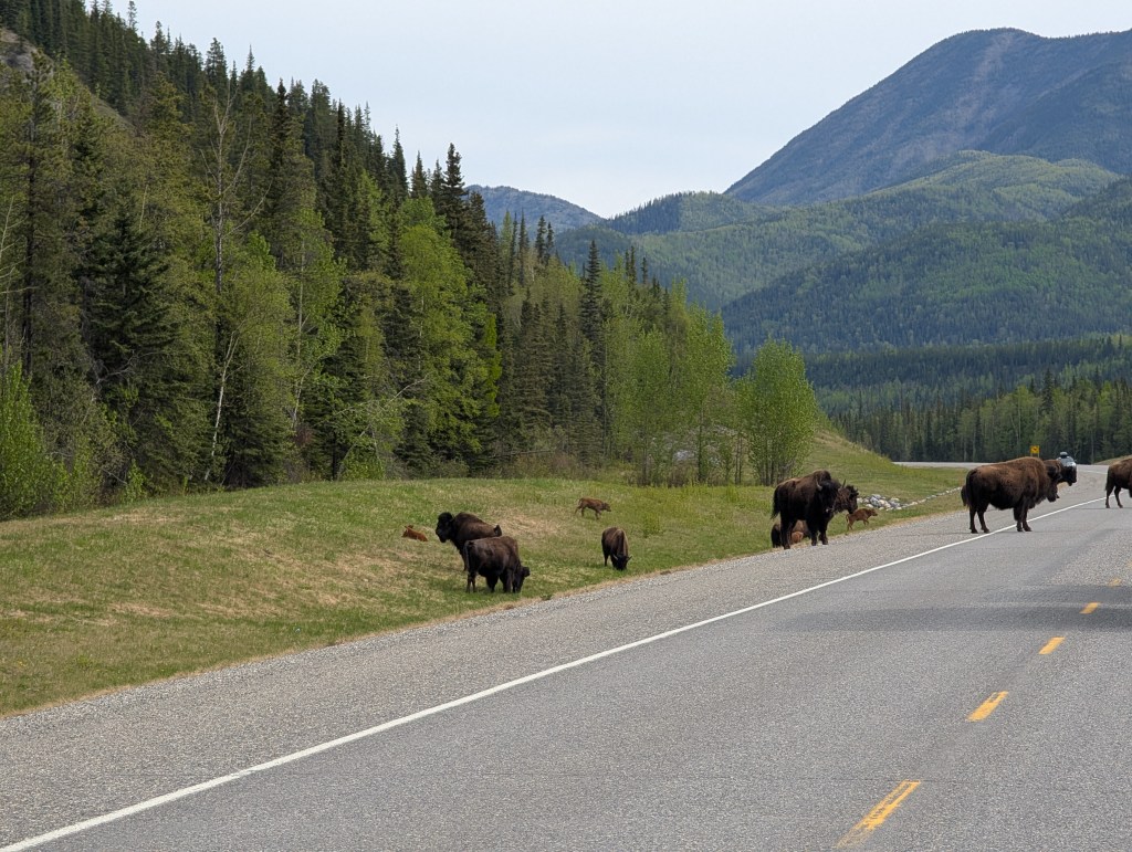 On this leg we’ve seen black bears and caribou but no elk, bison, deer, sheep or moose. Lots of signs suggesting to slow down for wild life but nada.