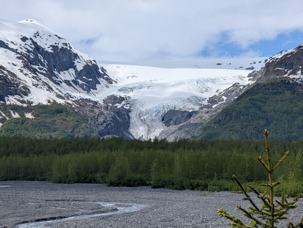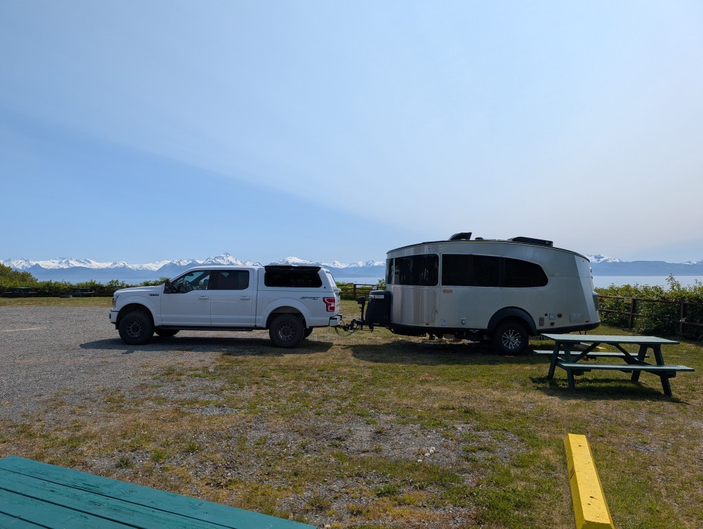 A bit of a challenge to find a level spot but you can’t beat the view. That is NOT the Columbia Glacier in the background. Every western view featured a glacier big and small.