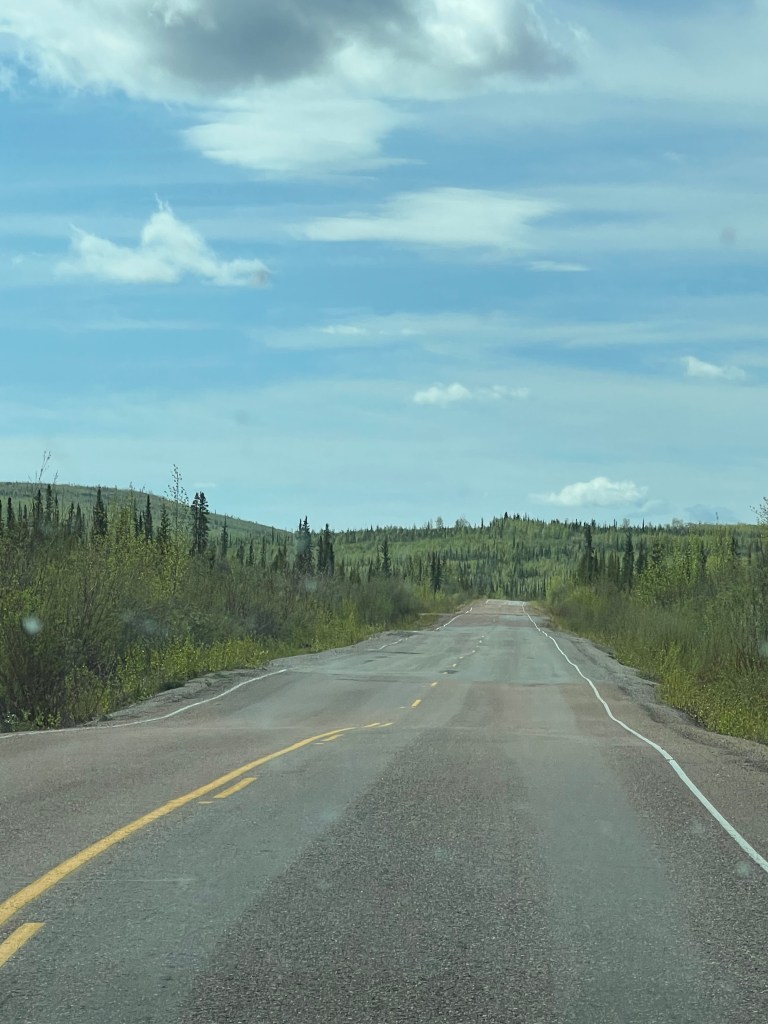 <Tuesday May 20> This was a long drive of about 300 miles to Fort Nelson. It was boring trip with little scenery other than rolling hills. We saw very little wildlife… 2 deer, 1 bear, 1 moose and a beaver dam. Only excitement was almost hitting one of the deer.